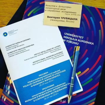 2. В.В. Трубицына приняла участие в международной научной конференции «Фольклор и фольклорно-литературные связи в современных исследованиях» (Торунь, Польша, 28-29 мая 2018 г.): выступила с докладом «Пасторальные мотивы и образы в песенном фольклоре Кемеровской области».