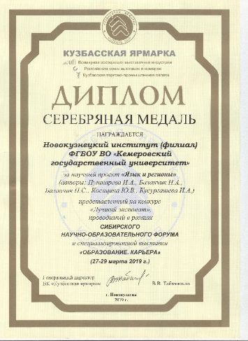 28. И.А. Пушкарева, И.А. Кусургашева приняли участие во Всероссийская неделе вузовской науки (Всероссийском конкурсе лучшей научной книги - 2018; Сочи, Международный инновационный университет, 10-12 сентября): подготовленное в рамках проекта учебное пособие «Стилистика региональной прессы» удостоено диплома: https://nbikemsu.ru/news/pobeda-prepodavatelya-nfi-kemgu-na-vserossijskom-konkurse/